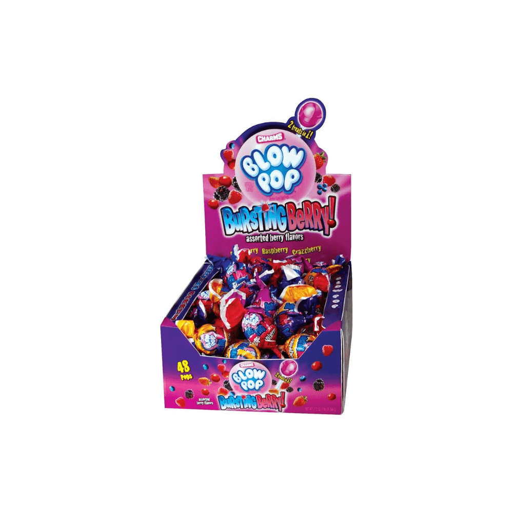 Charms Blow Pops combine a tangy hard candy shell with a chewy bubblegum center, offering twice the fun in every bite. Available in a variety of flavors, including Cherry, Berry Blast, Black Cherry, and more, these iconic lollipops are a nostalgic treat for all ages.
