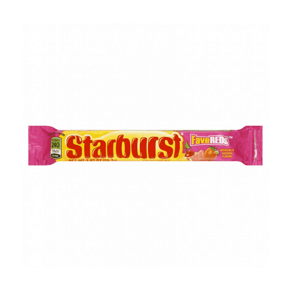 Bring bold, juicy flavour to every moment with Starburst® FaveREDs™ Fruit Chews, a candy mix made especially for fans of the most-loved red and pink Starburst flavors. Each piece delivers the unmistakably soft, chewy texture and intense fruit taste that Starburst is famous for—bursting with sweetness from the first bite to the last.